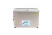 通過換能器,將功率超聲頻源的聲能轉換成機械振動,通過清洗槽壁將超聲波輻射到槽子中的清洗液。由于受到超聲波的輻射,槽內液體中的微氣泡能夠在聲波的作用下快速變大破裂,破裂時產生的高強度剪切力作用于各類樣品上,從而達到清洗、提取、乳化、加速溶解、粉碎、分散等作用。